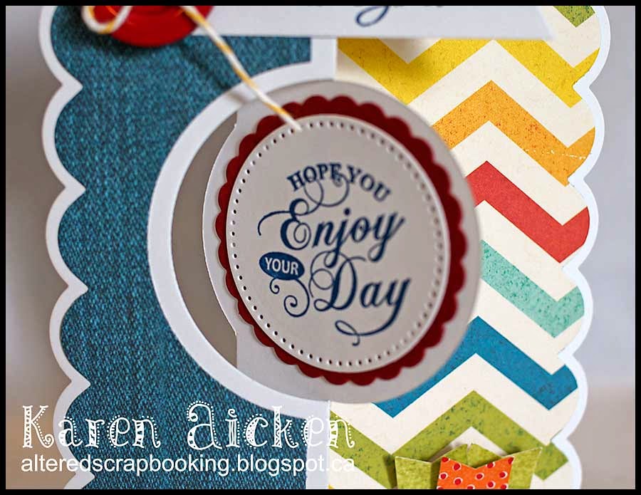 I never really put away the little banner punch I got during Stampin' Up's Sale-A-Bration this Spring. It's SO handy, and again - a great way to use up little bits and pieces of patterned papers.