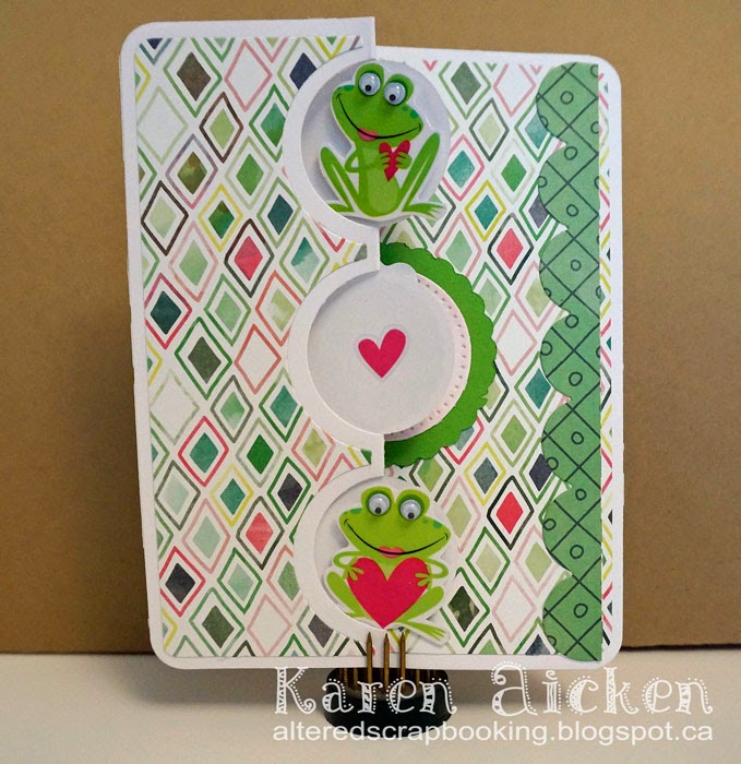 It's Flip-It Friday here on my blog, and I have another Froggy Valentine to share today. Once again I had a strip of patterned paper leftover. This one is from my Spiral Circle Pull Card Frog Valentines (click HERE to see them) so I used it with the Triple Circle Flip-It's to make our Grandson's Valentine.